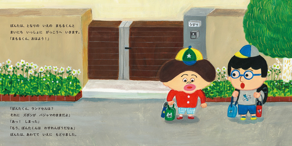 ぽんたくんはわすれものが多い男の子。学校へ行くのにパジャマのままだったり、ランドセルをわすれたり……。