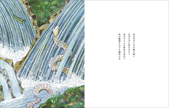この力強い詩に絵を描いたのは、絵本作家・美術家として幅広く活動するザ・キャビンカンパニーの二人です。谷川さんが生み出した詩と対話を繰り返し、独自の表現で新たな息吹を吹き込みました。