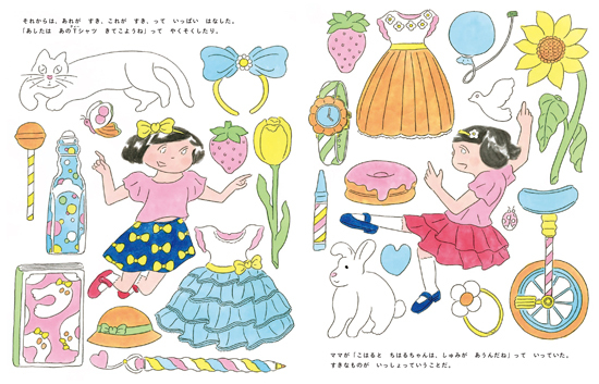 北澤さんの描く、ささやかだけれど、甘くて華やかで夢のような女の子の日常風景。好きなものにかこまれるってこんな感じ、好きなものを共有できるってこんな感覚! 一瞬で子どもたちの心を虜にしてしまう、そんな絵の世界にすっと入ってくるのが……小さな一点の曇り。なんだか残酷です。だけど、好きな人ができるってこういう事でもあるのです。大人になるまで、ずーっと付き合っていかなければいけない感情なのです。