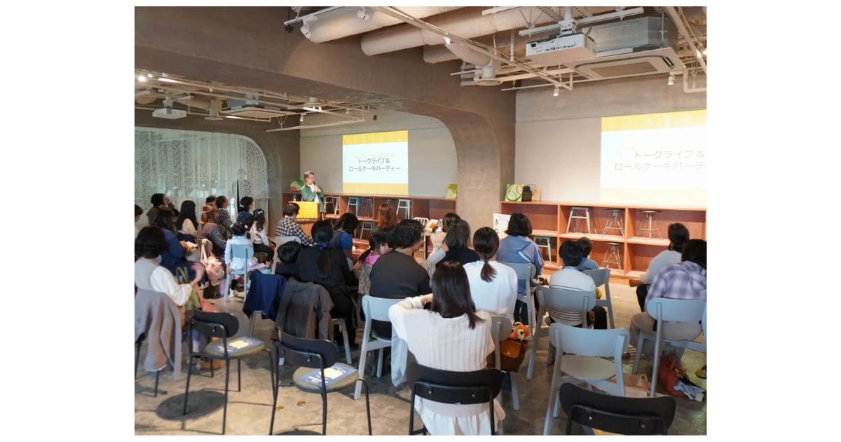 トークライブのあとは、絵本のモチーフのロールケーキにちなみ、ロールケーキが食べられる美味しいパーティーを開催。株式会社モンシェール様のご協力により、1日に1万本売れたこともあるという「堂島ロール」との特別コラボが実現しました。