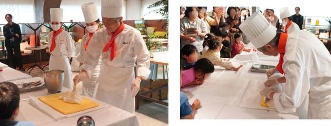 切り分けられるのを今か今かと待ち受ける子どもたちの様子に、パティシエとなったのりたけさんの顔にも笑みがこぼれます。