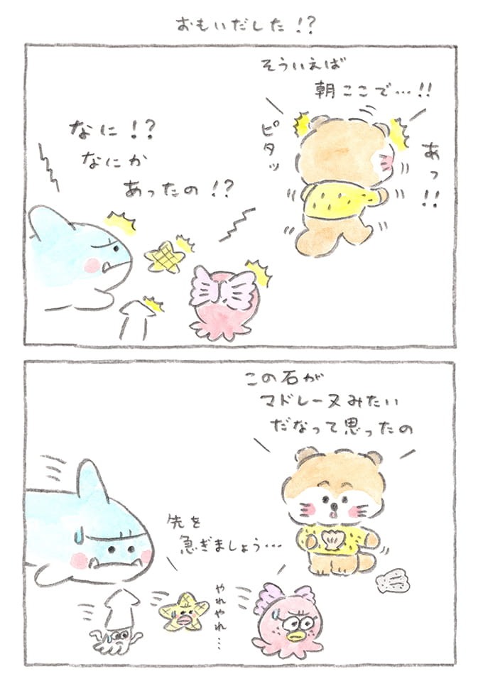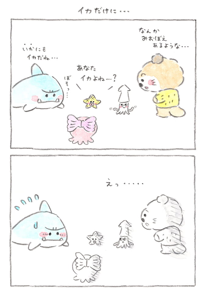 ぶーちゃんじゃない"何か"は、イカだったとは! シャーくんのダジャレに、みんなの反応が正直すぎて笑っちゃいます。