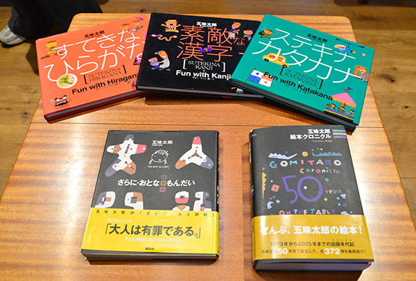 デビューから半世紀以上、今なお第一線で活躍している五味太郎さんの魅力を絵本ファンのみならず多くの方に知ってほしいとの思いで、出版社の垣根を越えて実現しました。