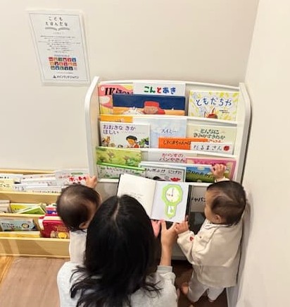助産院利用中のママ達からは「子どもにも、自分が読んでいた絵本を読んであげられるのが嬉しい」という声が多かったです。産後ケア中のママ達も、懐かしみながら自分の子どもに読んでいます。ママが産後ケア利用中はお預かり中の赤ちゃんに対して、保育スタッフが読み聞かせも行っています。どれも新しく、誰もが読んだことがある絵本ばかりで感激です。